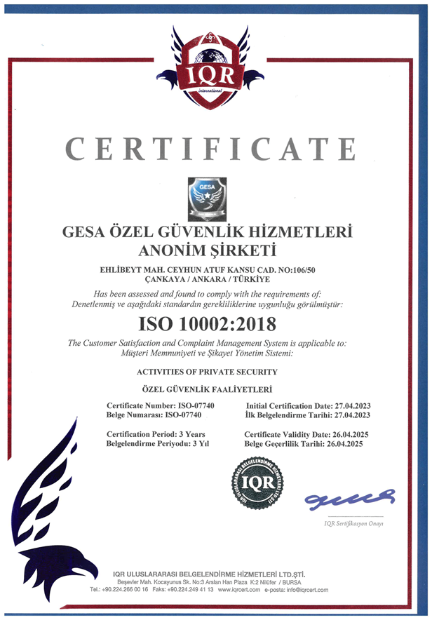 Hizmet kalitemizi belgeleyen ulusal ve uluslararası sertifikalarla çalışmalarımızı daha güvenilir ve sürdürülebilir bir zemine taşıyoruz.